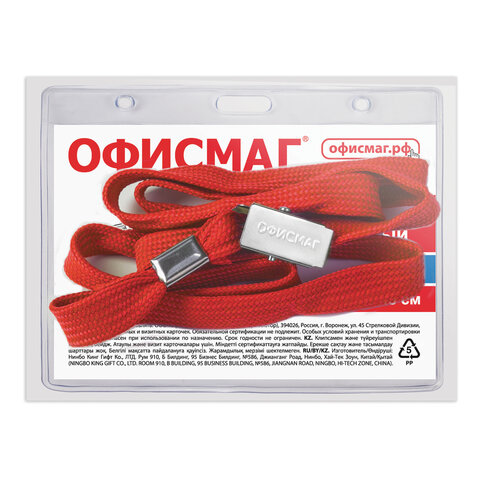 Бейдж на текстильной красной ленте используется для размещения именных карточек, пропусков, пластиковых карт. Карман из мягкого прочного пластика гарантирует долгий срок службы. Закрепляется лентой 45 см. Размер вкладыша 90х60 мм.