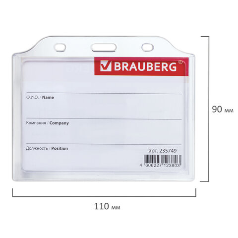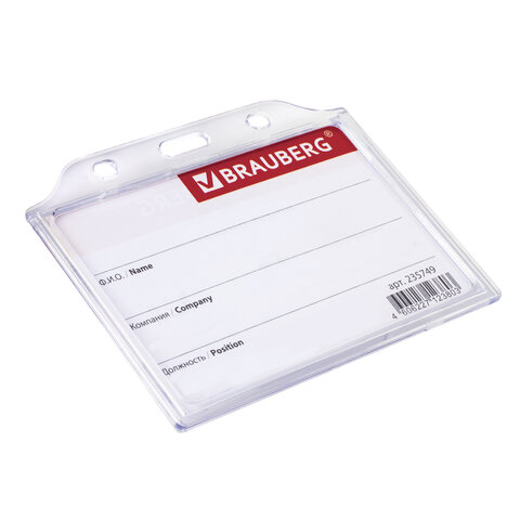 Горизонтальный бейдж BRAUBERG для именной карточки предназначен для идентификации сотрудников в компаниях, а также на семинарах, тренингах, презентациях и других мероприятиях.