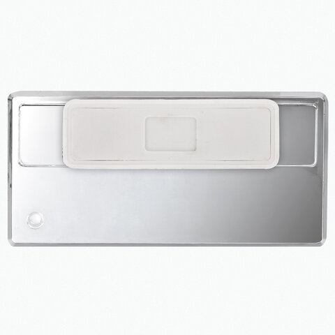 Твердый зеркальный пластик премиального серебристого цвета гарантирует долгий срок службы. Будет незаменим для сотрудников, обязанных по роду деятельности носить бейджи. Закрепляется магнитом. Защитит Вашу одежду от необходимости в мелких проколах булавкой. Размер вкладыша - 14х65 мм. Серебристый цвет бейджа позволит выгодно отличиться среди обычных магнитных бейджей. Крепление выполнено в белом цвете.