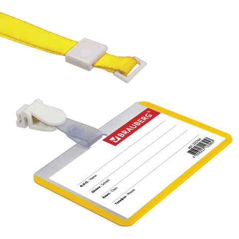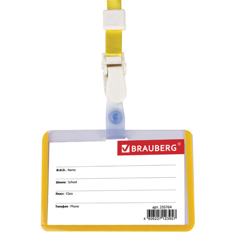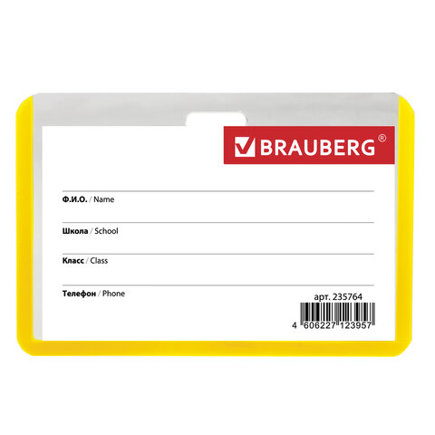 Горизонтальный бейдж школьника BRAUBERG с желтой окантовкой используется для идентификации учащегося в образовательных учреждениях.