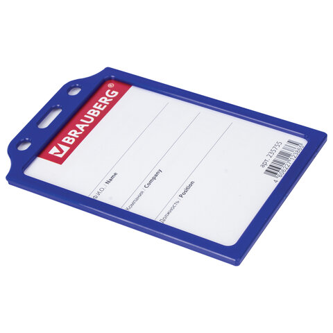 Бейдж вертикальный для пропуска и ID-карт 85х54 мм синий, BRAUBERG ULTRA, 238910