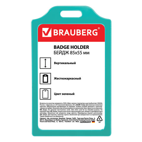 Вертикальный бейдж BRAUBERG для именной карточки предназначен для идентификации сотрудников в компаниях, а также на семинарах, тренингах, презентациях и других мероприятиях.