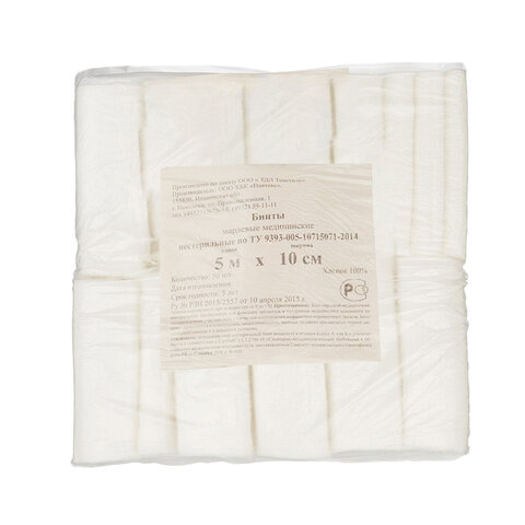 Бинт марлевый нестерильный 10см х 5м, плотность 28(±2) г/м2, индивидуальная упаковка, NF