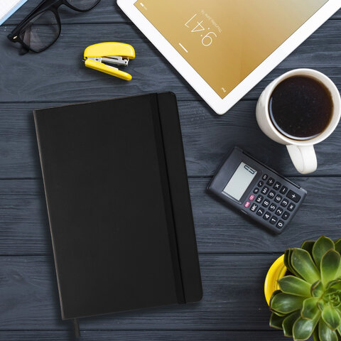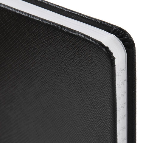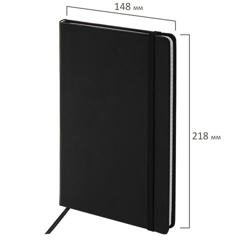 Блокнот А5 148x218 мм BRAUBERG "Optimal", под кожу, 80 листов, резинка, держатель для ручки, клетка, черный, 118634