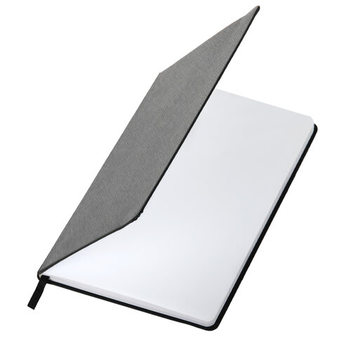 Блокнот А5 148x218 мм BRAUBERG "Optimal", под кожу, 80 листов, резинка, держатель для ручки, клетка, серый, 118638