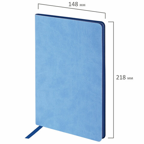 Блокнот А5 148x218 мм BRAUBERG "Optimal", под кожу, 80 листов, резинка, держатель для ручки, клетка, синий, 118633