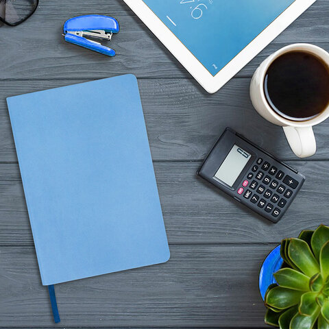 Мягкая интегральная обложка стилизована под кожу. Имеет закругленные уголки. Подходит для горячего тиснения. 80 листов позволят зафиксировать большой объем информации. Линовка блока в клетку (5х5 мм) дает возможность аккуратно заполнить цифровые значения, а также нанести чертежные зарисовки. Внутренний блок выполнен из офсета тонированного цвета плотностью 70 г/м2 и крепится к обложке с помощью книжного переплета. Срез и форзац блокнота окрашены на контрасте цвета обложки, что придает блокноту изысканность и шарм. Дополнением является закладка-ляссе, с помощью которой при необходимости можно быстро открыть нужную страницу. Формат блокнота А5 (148х218 мм) позволит владельцу поместить его в кейс или сумку малых габаритов.