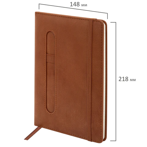 Блокнот А5 148x218 мм BRAUBERG "Optimal", под кожу, 80 листов, резинка, держатель для ручки, клетка, бежевый, 118636