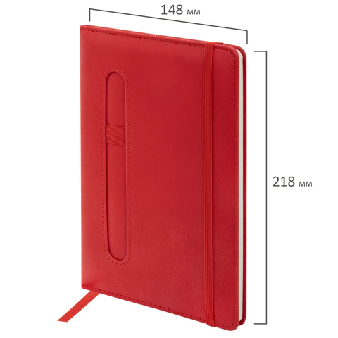 Модель оснащена резинкой-фиксатором, предотвращающей самопроизвольное открытие в сумке или портфеле. Также предусмотрены закладка-ляссе для быстрого доступа к нужной странице и держатель для ручки.