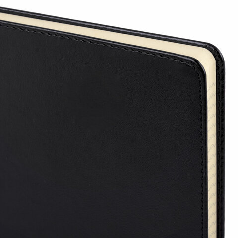 Блокнот А5 148x218 мм BRAUBERG "Optimal", под кожу, 80 листов, резинка, держатель для ручки, клетка, черный, 118634