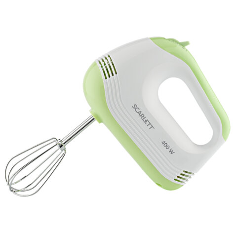 Миксер SCARLETT SC-HM40S15, 400 Вт, 5 скоростей, 2 венчика, 2 крюка для теста, белый/зеленый
