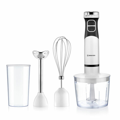 Блендер погружной BRAYER BR1243, 800 Вт, 2 скорости, 2 насадки, стакан, белый