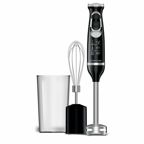 Блендер погружной BRAYER BR1241, 800 Вт, 2 скорости, 2 насадки, стакан, черный