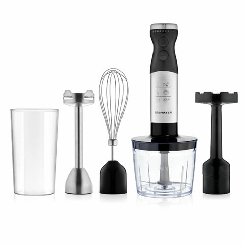 Блендер погружной BRAYER BR1244, 800 Вт, 8 скоростей, 4 насадки, стакан, черный