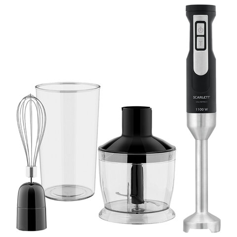 Блендер погружной SCARLETT SC-HB42F61, 1100 Вт, 25 скоростей, 3 насадки, стакан, черный