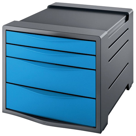 Блок из 4 закрытых лотков для бумаги, настольный, ESSELTE "VIVIDA", 285х245х365 мм, синий, 623961