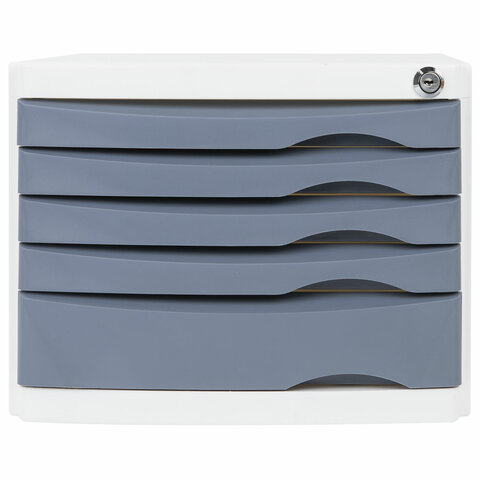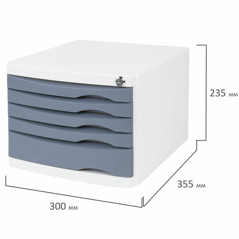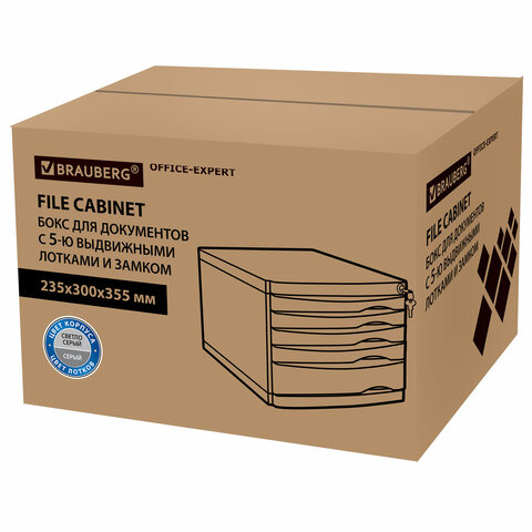 Бокс с 5 выдвижными лотками, корпус светлый, лотки серые, 235х300х355 мм, BRAUBERG "Office-Expert", 238045