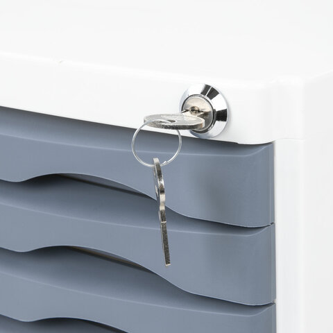 Бокс изготовлен из ударопрочного полистирола. Предназначен для хранения бумаг формата А4 и различных канцелярских принадлежностей. Представляет собой устойчивую конструкцию с пятью выдвижными лотками. Стильное сочетание светлого корпуса и серых лотков отлично впишется в любой интерьер. Замок обеспечит надежное хранение важных документов. Размер: 235х300х355 мм.