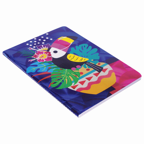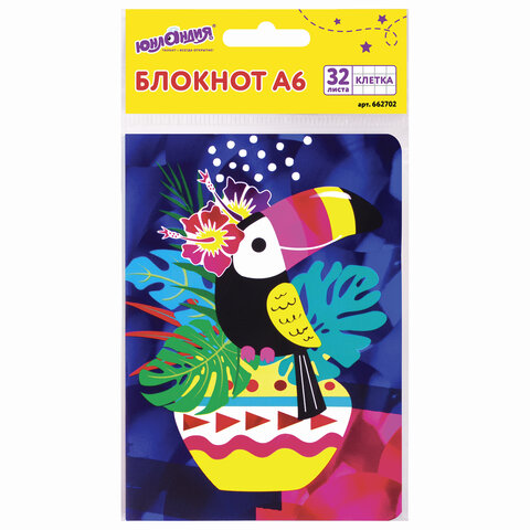Блокнот формата А6 содержит 32 листа с линовкой в клетку. Имеет боковое расположение переплета. Обложка выполнена из мелованного картона и украшена голограммой на лицевой части. Внутренний блок состоит из белой офсетной бумаги плотностью 70 г/м2. Благодаря компактному размеру ребенок без проблем сможет поместить блокнот в портфель или сумку.