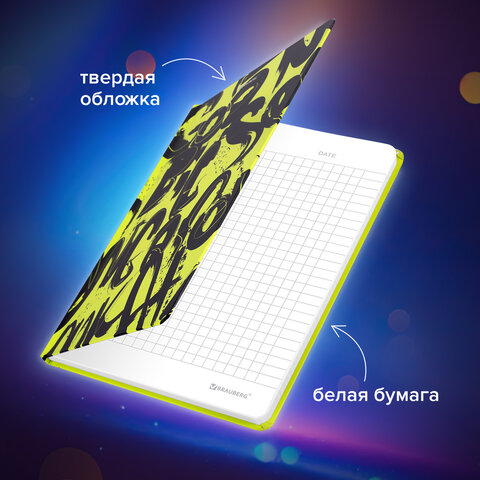 Яркий блокнот BRAUBERG для записей и заметок с практичной твердой обложкой с матовой ламинацией. Резинка-фиксатор надёжно защищает листы от замятия.