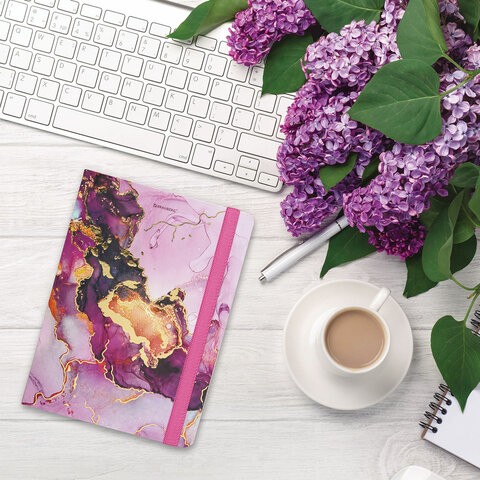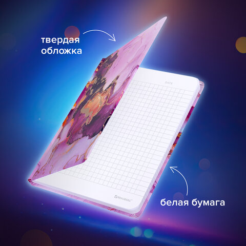 Яркий блокнот BRAUBERG для записей и заметок с практичной твердой обложкой с матовой ламинацией и тиснением фольгой. Резинка-фиксатор надёжно защищает листы от замятия.
