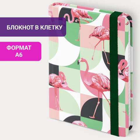 Блокнот с резинкой в клетку 96 л., МАЛЫЙ ФОРМАТ А6, 109х148 мм, твердая обложка, BRAUBERG, "Гранаты", 116331