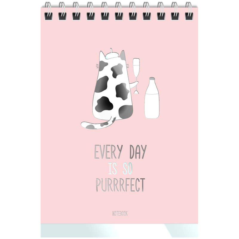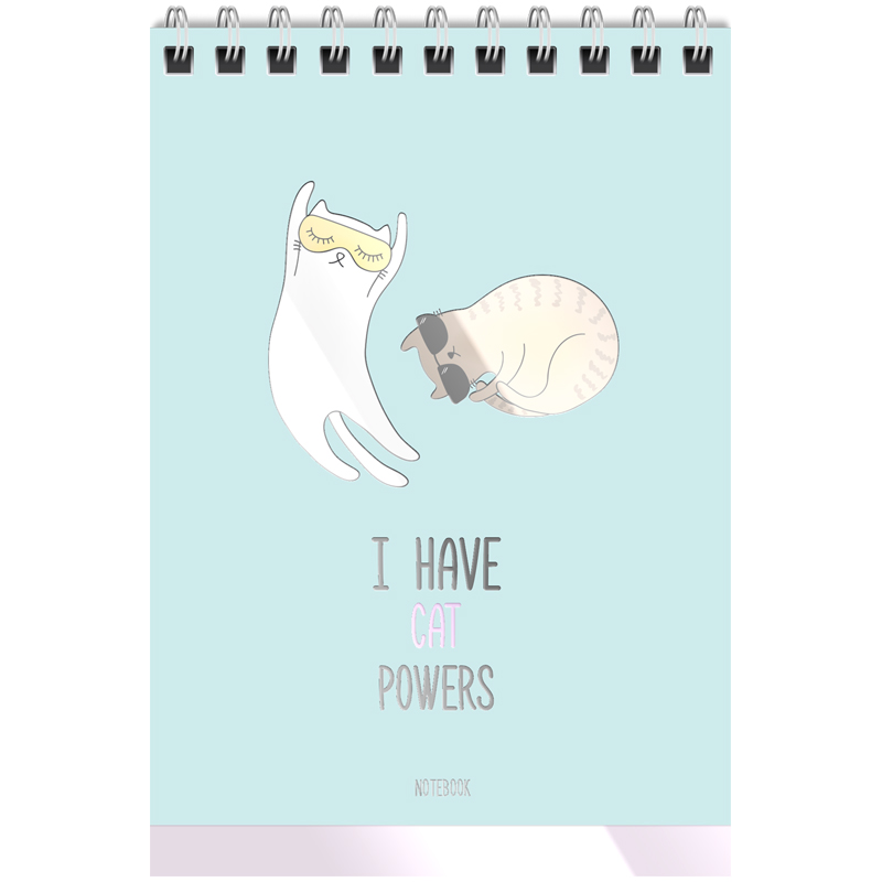 Состоит из 40 листов размером 110*145 мм офсетной бумаги белого цвета плотностью 60г/м2. Линовка – клетка. Обложка – мелованный картон с выборочным УФ-лаком. Милые котики на обложке блокнота поднимут настроение.