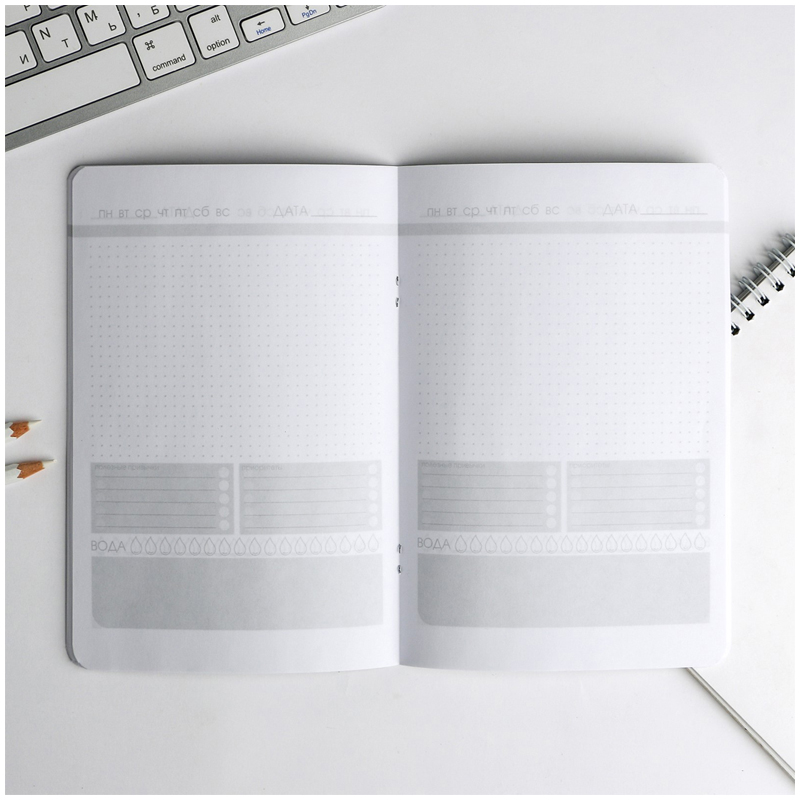 Уникальная записная книжка, которая поможет Вам спланировать день до мелочей! Внутренний блок оформлен как для ведения ежедневных задач и заметок, так и для контроля полезных привычек, приоритетных дел и количества выпитой воды! Удобный формат такого блокнота без проблем позволит Вам брать его везде с собой, а обложка soft-touch подарит приятные тактильные ощущения.