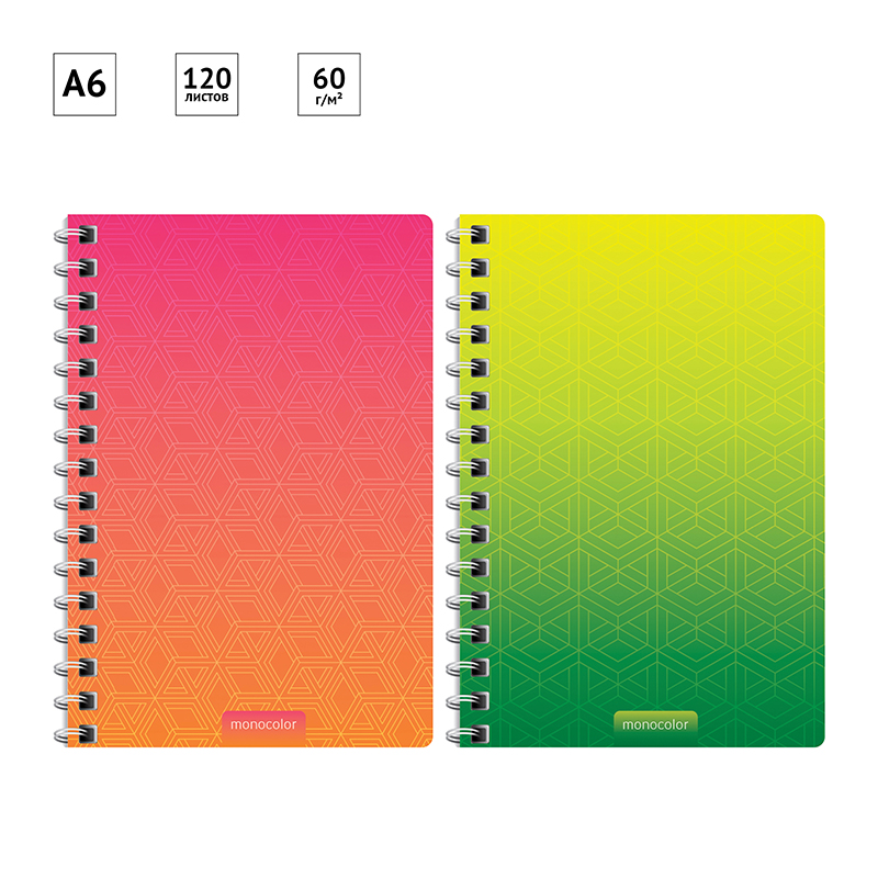 Стильная записная книжка ArtSpace «Моноколор Bright Modern» формата А6 на гребне. Обложка из мелованного прочного картона с рисунком для тех, предпочитает яркий минималистичный дизайн. Внутренний блок плотностью 60г/м² состоит из 120 листов офсетной бумаги белого цвета и линовкой в клетку. Записная книжка представлена в размере 100*145 мм. <br/>Записная книжка ArtSpace «Моноколор Bright Modern» не подходит под персонализацию. Продаётся упаковкой по 6 штук. <br/>• Формат: А6;<br/>• Количество листов; 120;<br/>• Материал обложки: мелованный картон; <br/>• Цвет обложки: рисунок;