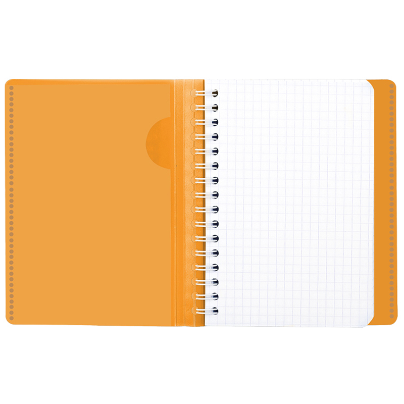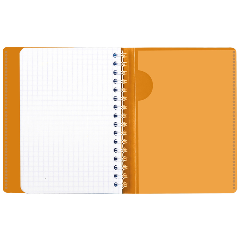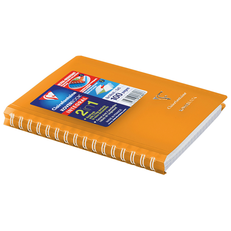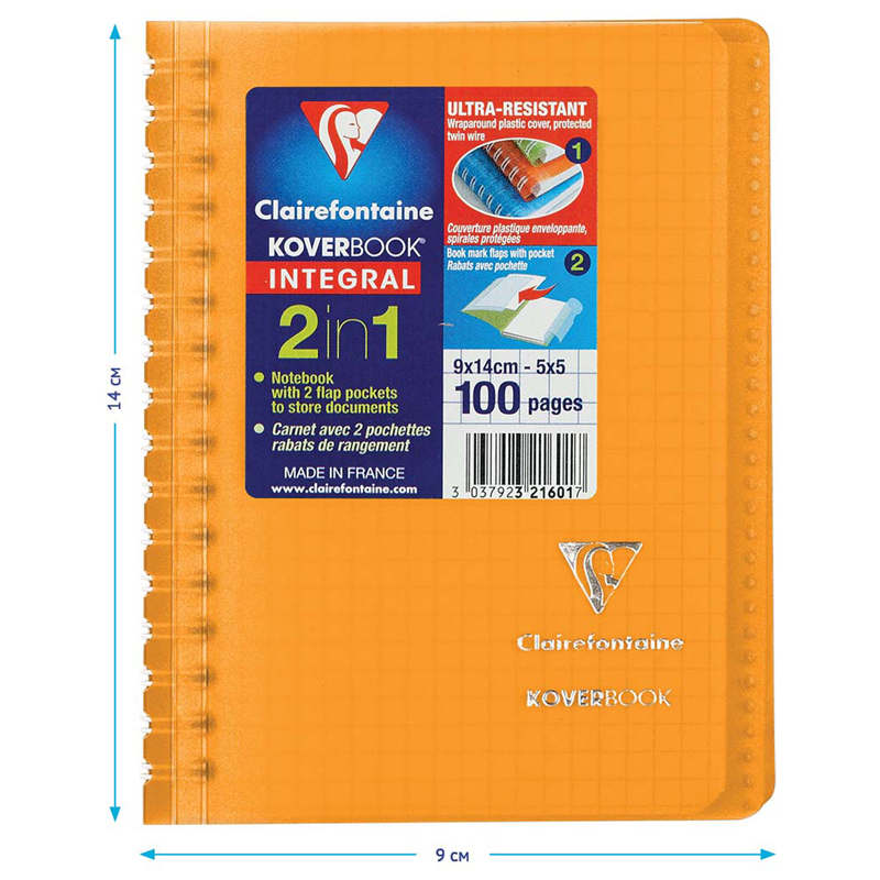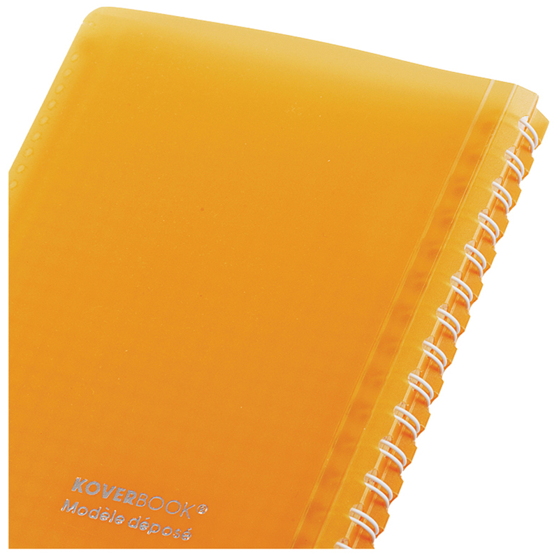 Записная книжка Clairefontaine Koverbook формата А6 имеет пластиковую обложку оранжевого цвета. Пластиковая обложка имеет две дополнительные откидные створки с внутренней стороны, которые служат карманом для документов или визиток, закладкой или разделителем для записей. Внутренний блок изделия выполнен из высококачественной белой бумаги Clairefontaine плотностью 90 г/м2 с печатью в один цвет. Листы скреплены гребнем, который защищает обложка. Записная книжка Clairefontaine Koverbook компактна – её размер 90*140 мм, благодаря чему изделие удобно всегда носить с собой.
