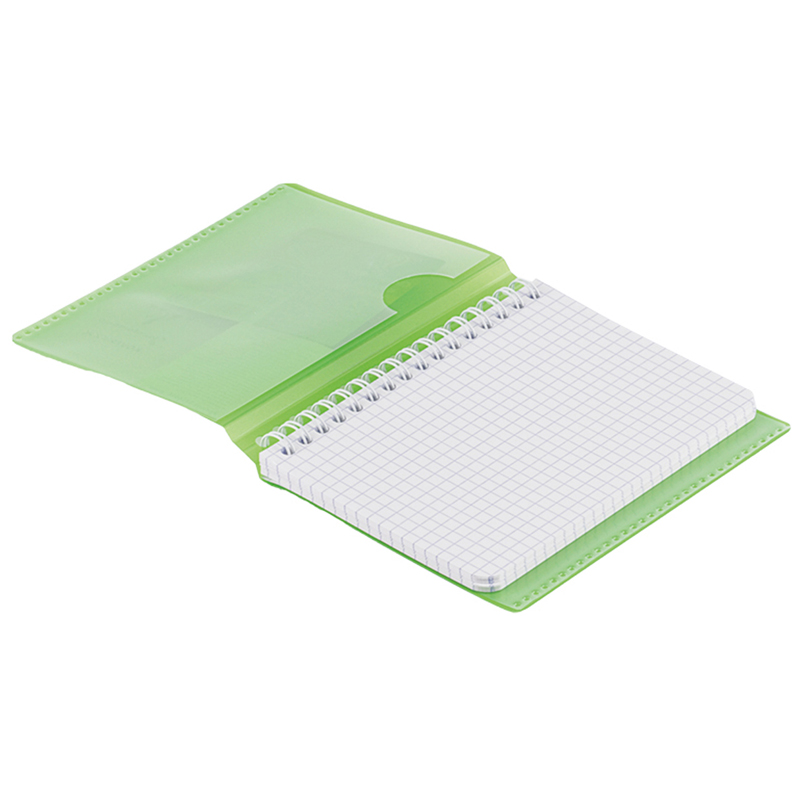 Записная книжка Clairefontaine Koverbook формата А6 имеет пластиковую обложку зелёного цвета. Пластиковая обложка имеет две дополнительные откидные створки с внутренней стороны, которые служат карманом для документов или визиток, закладкой или разделителем для записей. Внутренний блок изделия выполнен из высококачественной белой бумаги Clairefontaine плотностью 90 г/м2 с печатью в один цвет. Листы скреплены гребнем, который защищает обложка. Записная книжка Clairefontaine Koverbook компактна – её размер 90*140 мм, благодаря чему изделие удобно всегда носить с собой. <br/>• Формат: A6;<br/>• Количество листов: 50;<br/>• Материал обложки: пластик;<br/>• Цвет обложки: зелёный.