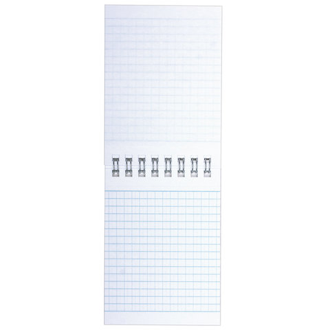 Блокнот формата А7 на евроспирали содержит 40 листов с линовкой в клетку. Имеет верхнее расположение переплета. Обложка выполнена из мелованного картона плотностью 200 г/м2. Внутренний блок состоит из белой офсетной бумаги плотностью 60 г/м2.