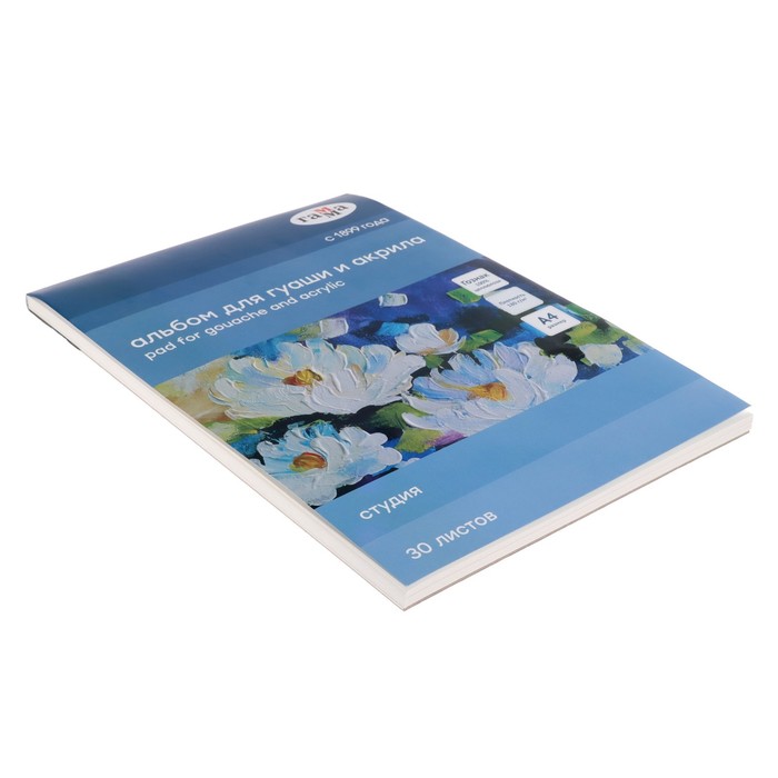 Альбом для акрила и гуаши 200 х 200 мм, 30 листов, 180г/м2, "Гамма. Студия", склейка