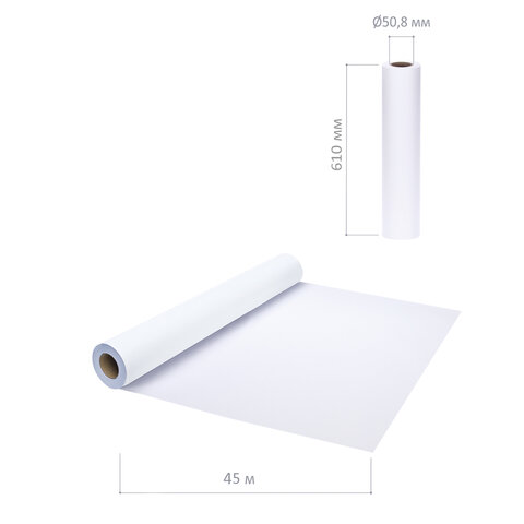 Бумага повышенной плотности 90 г/м2 исключает просвечивание изображения. Высокая степень белизны позволяет добиться более контрастного изображения при печати. Рулон имеет размер 610 мм, что соответствует формату А1+. Длина рулона - 45 м, внутренний диаметр втулки - 50,8 мм.