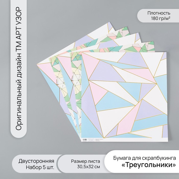 Бумага для скрапбукинга двусторонняя золото "Треугольники" плотность 180 гр набор 5 шт 30,5х32 см