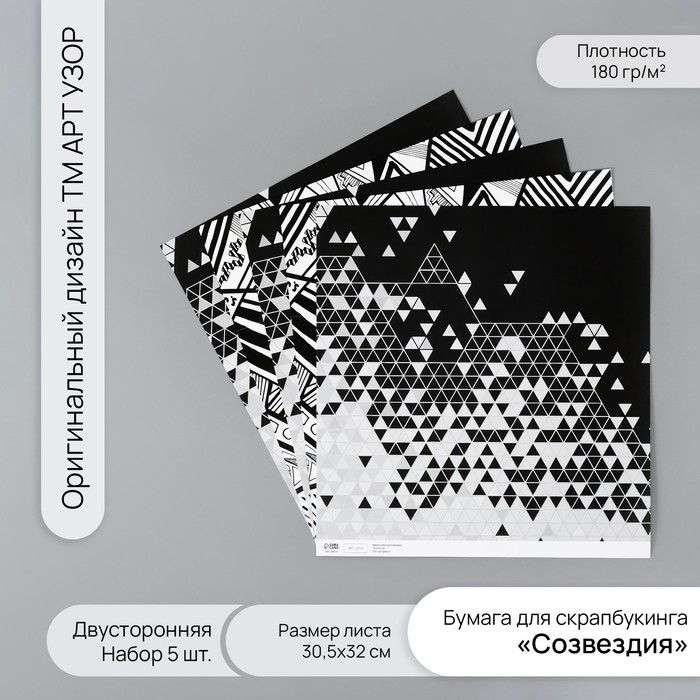 Бумага для скрапбукинга двусторонняя "Созвездия" плотность 180 гр набор 5 шт 30,5х32 см