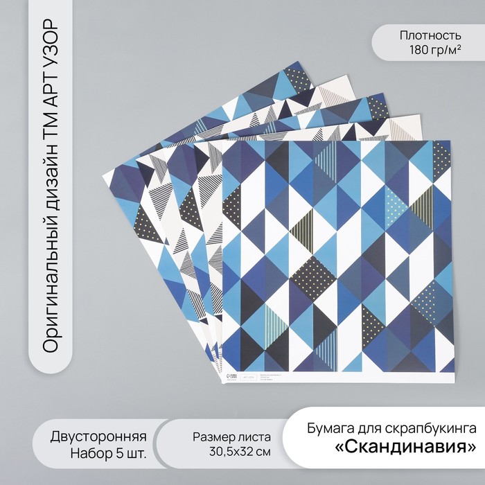 Бумага для скрапбукинга двусторонняя "Скандинавия" плотность 180 гр набор 5 шт 30,5х32 см