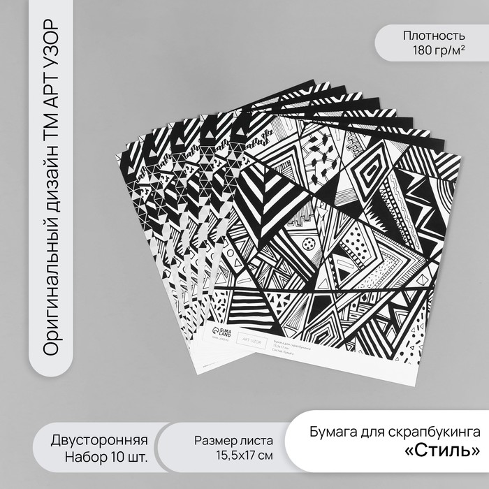 Бумага для скрапбукинга двусторонняя "Стиль" плотность 180 гр набор 10 шт 15,5х17 см