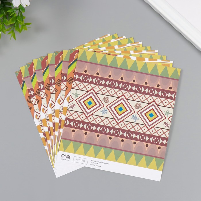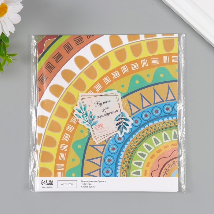 Бумага для скрапбукинга "Яркая геометрия" плотность 180 гр набор 10 шт 15,5х17 см