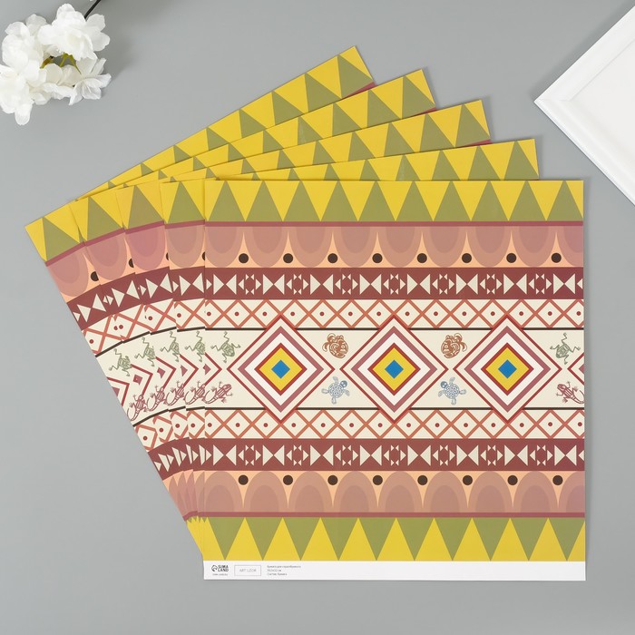 Бумага для скрапбукинга крафт "Изящные веточки" плотность 180 гр набор 5 шт 30,5х32 см