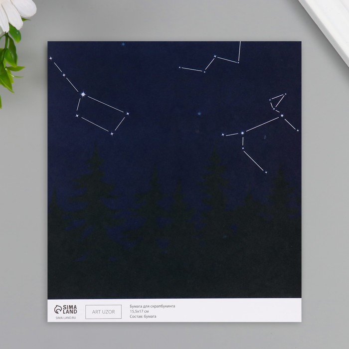 Бумага для скрапбукинга крафт "Изящные веточки" плотность 180 гр набор 5 шт 30,5х32 см