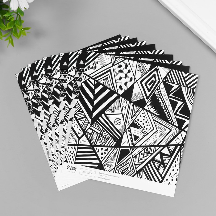 Бумага для скрапбукинга "Яркая геометрия" плотность 180 гр набор 10 шт 15,5х17 см