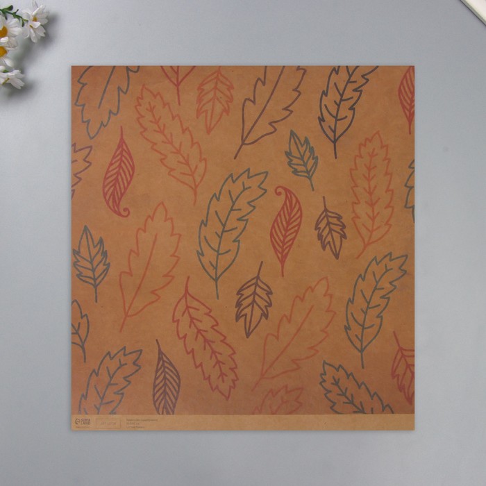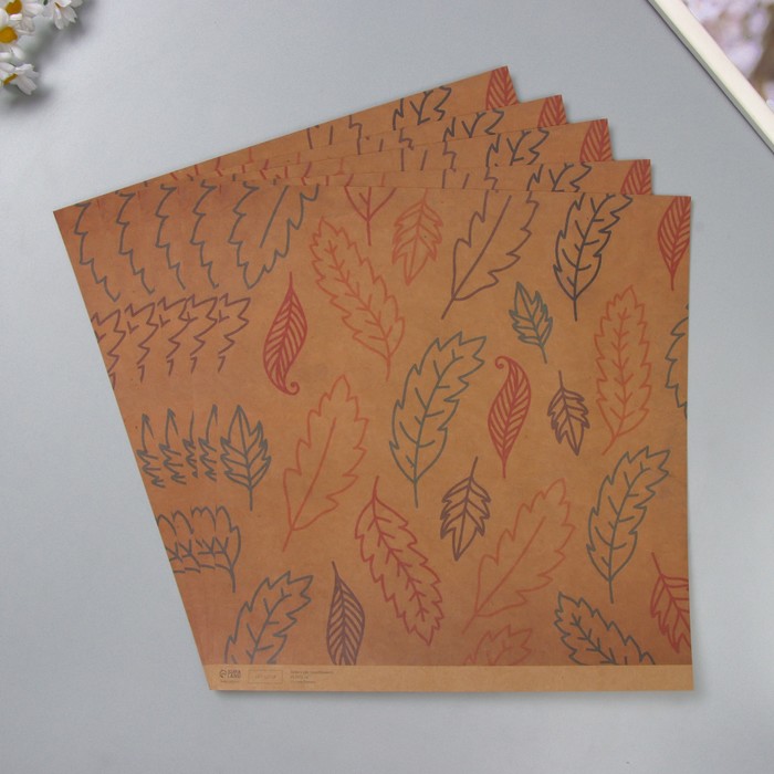 Бумага для скрапбукинга крафт "Изящные веточки" плотность 180 гр набор 5 шт 30,5х32 см