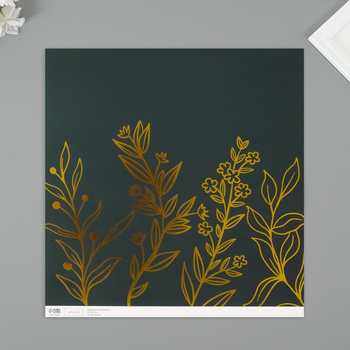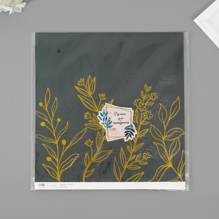Бумага для скрапбукинга крафт "Изящные веточки" плотность 180 гр набор 5 шт 30,5х32 см