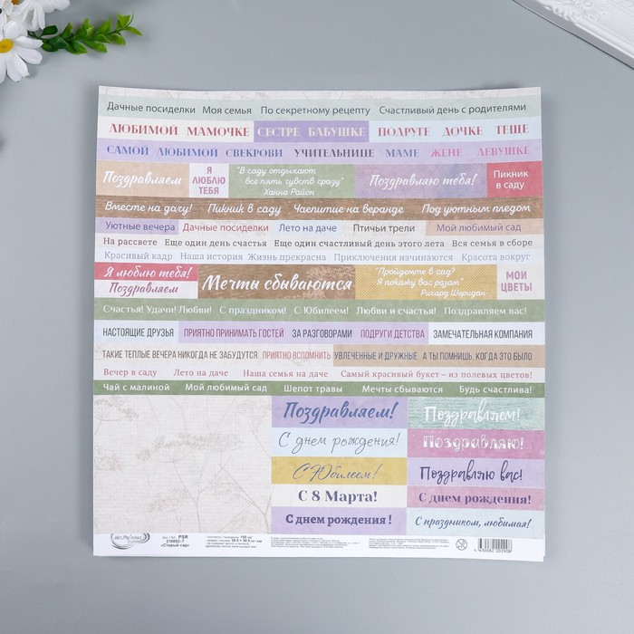 Бумага для скрапбукинга крафт "Полевые цветы" плотность 180 гр набор 5 шт 30,5х32 см