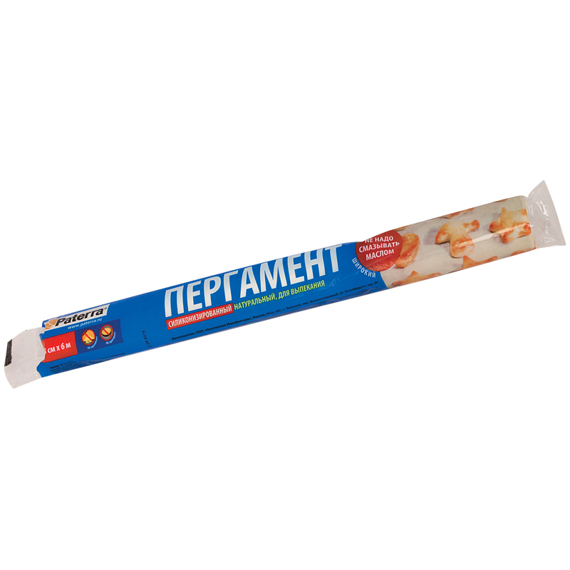 Бумага (пергамент) для выпечки Paterra, белая, 38см*6м, 41г/м2, в рулоне, в пленке