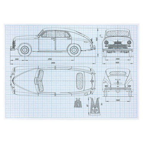 Бумага формата А4 (210х297 мм) и плотностью 80 г/м2. В наборе 20 листов. Цвет линовки - голубой. Отличается четкими линиями и точной миллиметровой разметкой.