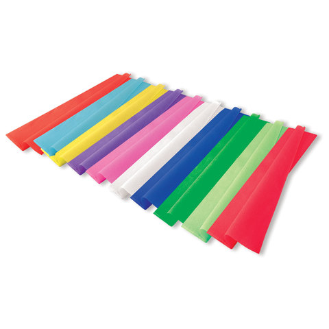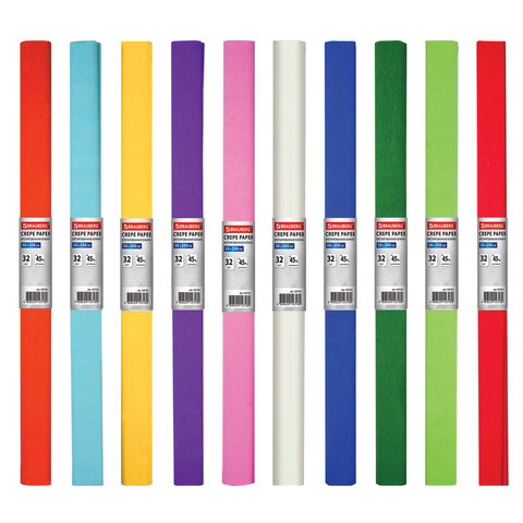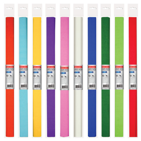 Благодаря своей высокой плотности 32 г/м2 и удлинению при натяжении на 45%, крепированная бумага позволяет создавать объемные композиции, которые надолго сохранят задуманную форму. Размер рулона — 50×250 см. Продается в картонном дисплее ассорти - в упаковке 200 рулонов бумаги 10 разных цветов. Это позволяет экономить время при изготовлении большого количества различных поделок - купив один раз большой набор ассорти, его хватит надолго и каждая поделка будет уникальной. Также такая упаковка удобна для продажи в розницу.