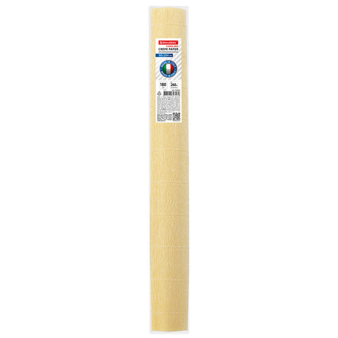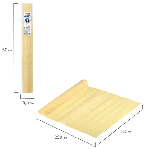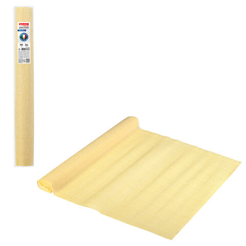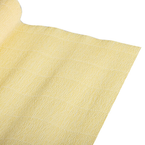 Гофрированная бумага представляет собой бумажную продукцию с неровной, складчатой поверхностью. Размер бумаги 50х250 см, плотность – 180 г/м2, удлинение при натяжении – 260%. Цвет - Лимонно-кремовый (577).