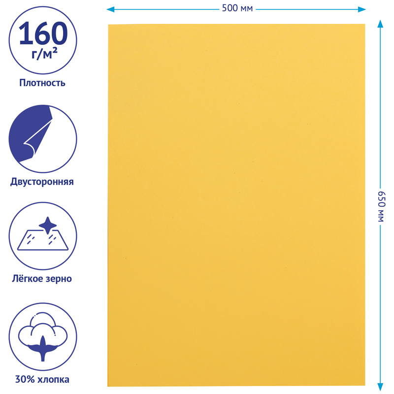 Цветная бумага Clairefontaine Etival color от французского производителя идеально подходит для творческих работ и рисования. Она имеет размер 500*650 мм, что позволяет использовать один лист для разных направлений в творчестве. Цвет тонированной в массе бумаги – лютик. Плотность бумаги – 160 г/м2. В наборе 24 листа. <br/>Цветную бумагу можно использовать для рисования карандашом, пастелью, гуашью, акрилом. Двусторонняя бумага имеет две разные поверхности: гладкая с одной стороны, лёгкое зерно – с другой. Состав: бескислотная, глубоко окрашенная, 100% чистая целлюлоза с добавлением 30% хлопка. В серии Etival color 44 глубоких и светостойких цвета. Бумага упакована в пакет. <br/>• Количество листов: 24;<br/>• Цвет: лютик;<br/>• Плотность бумаги: 160 г/м2;<br/>• Размер: 500*650 мм